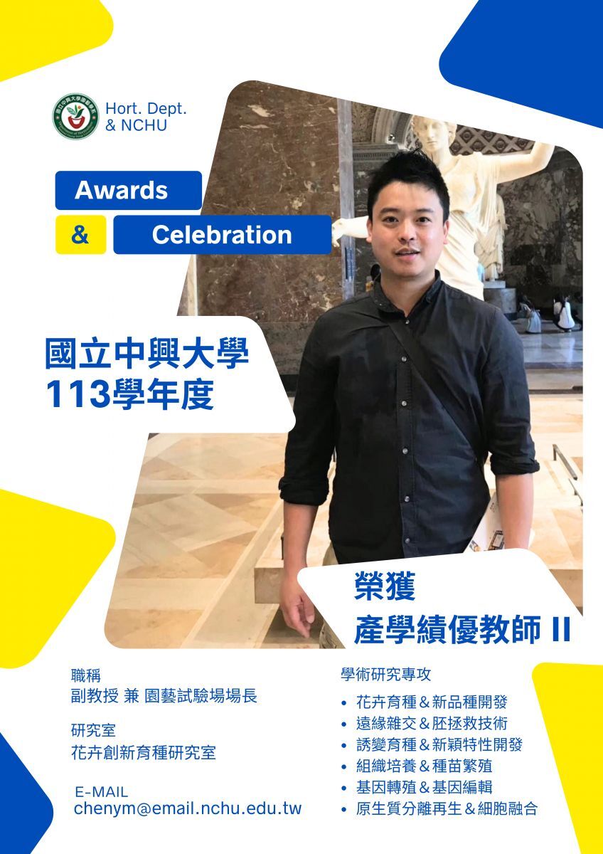恭賀!本系陳彥銘老師榮獲本校 113 年度「產學績優教師II」!
